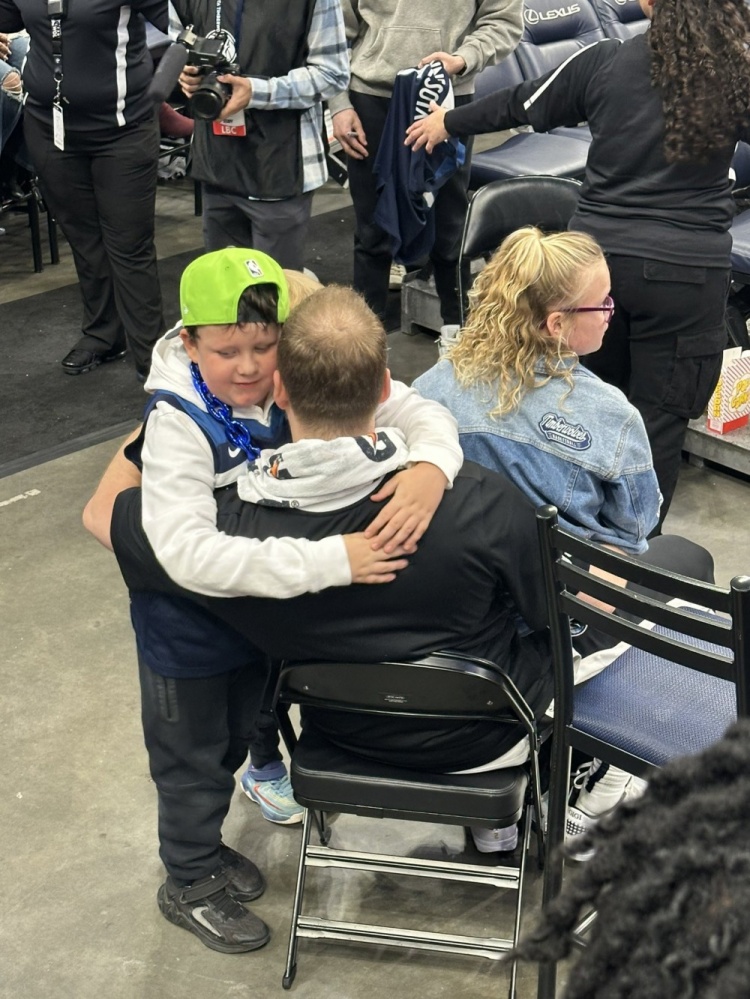 本場比賽,森林狼老將喬·英格爾斯12歲的自閉癥兒子雅各布,在家人的陪同下來到了現(xiàn)場觀看父親的比賽。在家人的支持下喬-英格爾斯今晚首發(fā)出戰(zhàn)六分鐘,盡管英格爾斯未能得分,但這個夜晚的意義遠非技術(shù)統(tǒng)計所能體現(xiàn)。