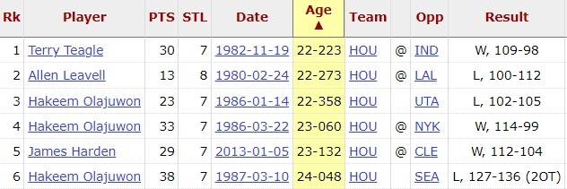阿門這樣一來,阿門(22歲51天)成為了火箭隊(duì)史上單場送出7+搶斷最年輕的球員,此前最年輕紀(jì)錄是特里-蒂格的22歲223天。