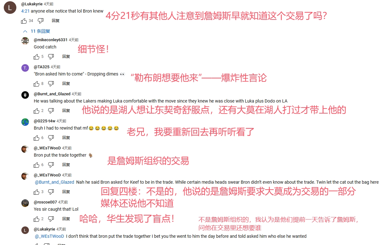 該節(jié)目評論區(qū)有網(wǎng)友抓住了莫里斯說的“湖人很想他來,詹姆斯也想要他來。”一句話,表示:“難道詹姆斯早就知東契奇交易?”