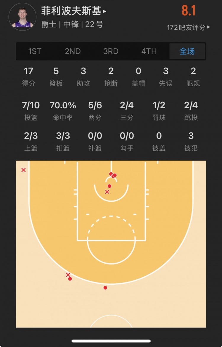 爵士32號(hào)秀 凱爾-菲利波夫斯基 登場27.3分鐘