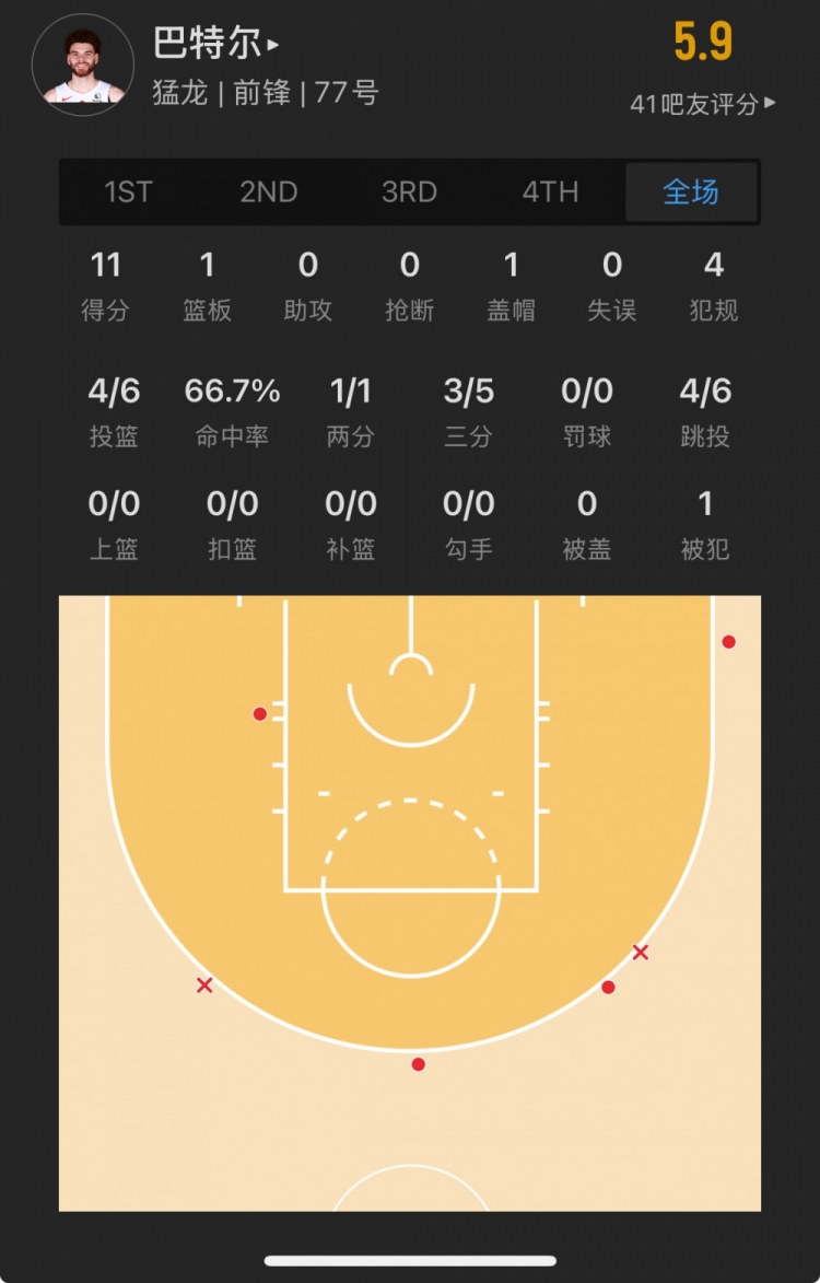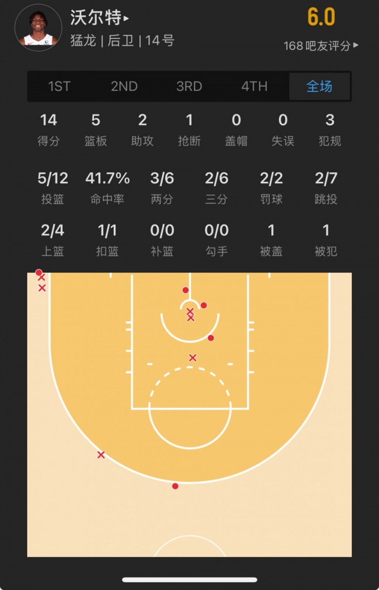 猛龍19號(hào)秀 賈科比-沃爾特 登場18.3分鐘