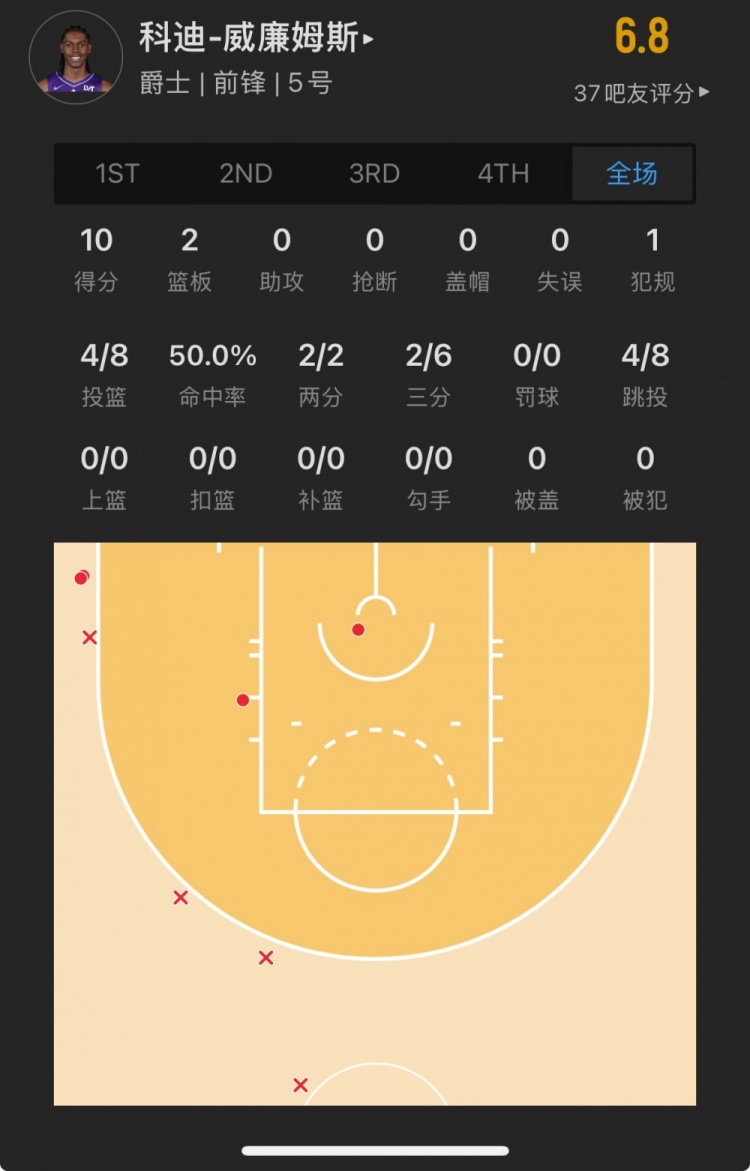 爵士10號(hào)秀 科迪-威廉姆斯 登場21.6分鐘