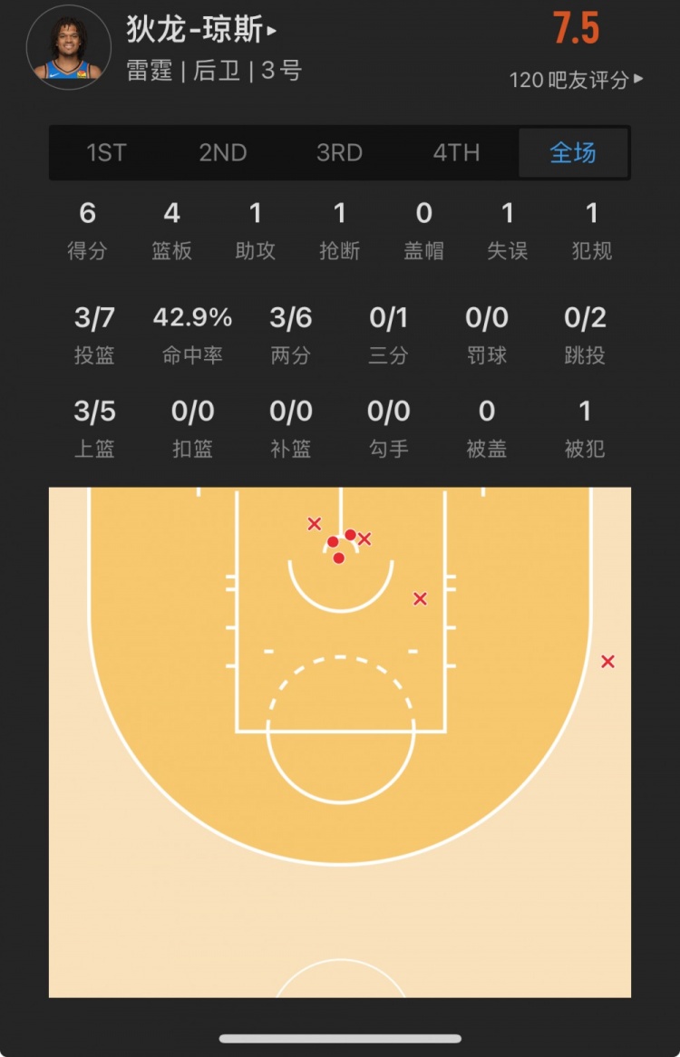 雷霆26號(hào)秀 狄龍-瓊斯 登場25.1分鐘