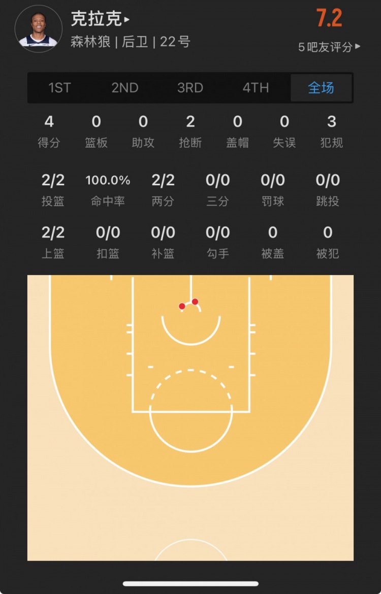 森林狼23年53號(hào)秀 杰倫-克拉克 登場11.6分鐘
