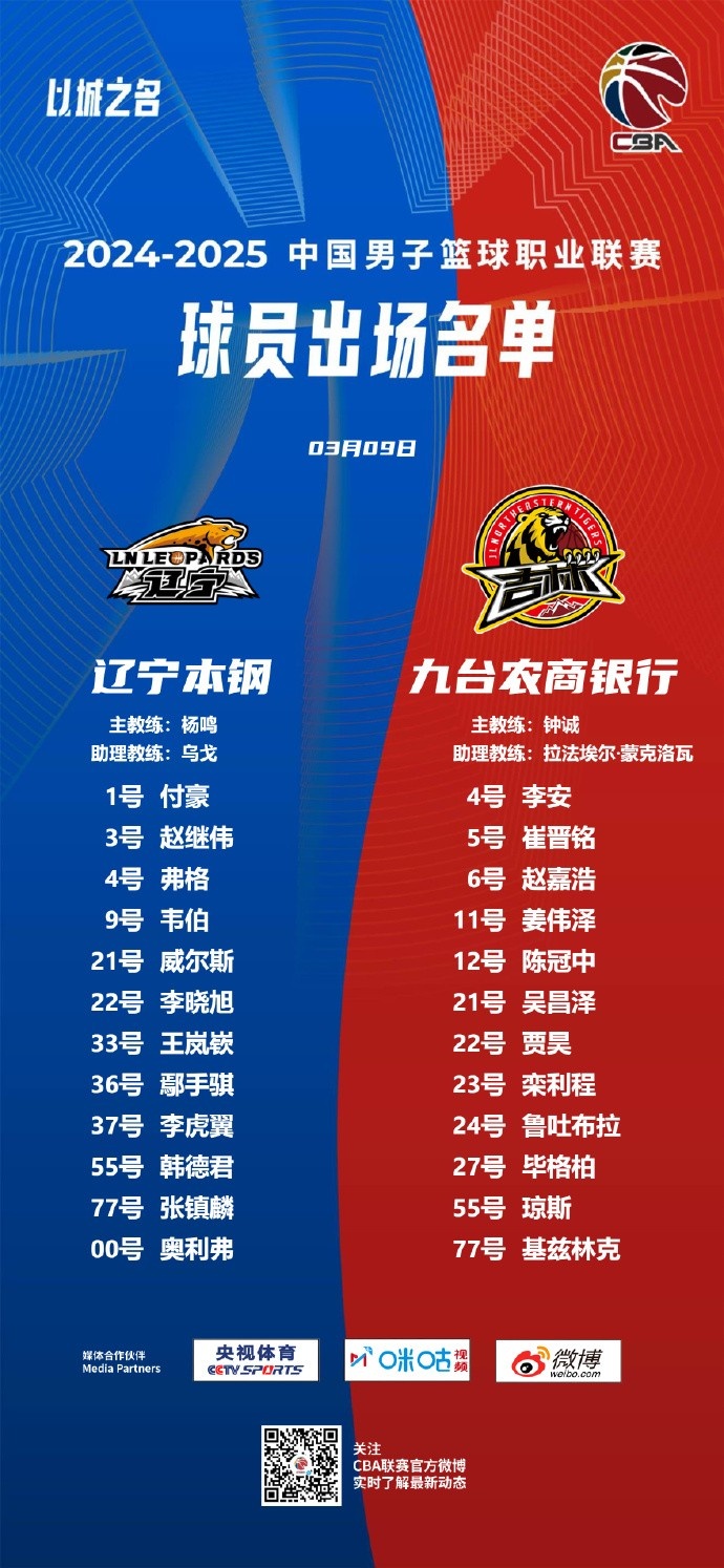 3月9日訊 今晚7點(diǎn)35分,遼寧男籃將在主場迎戰(zhàn)吉林男籃。