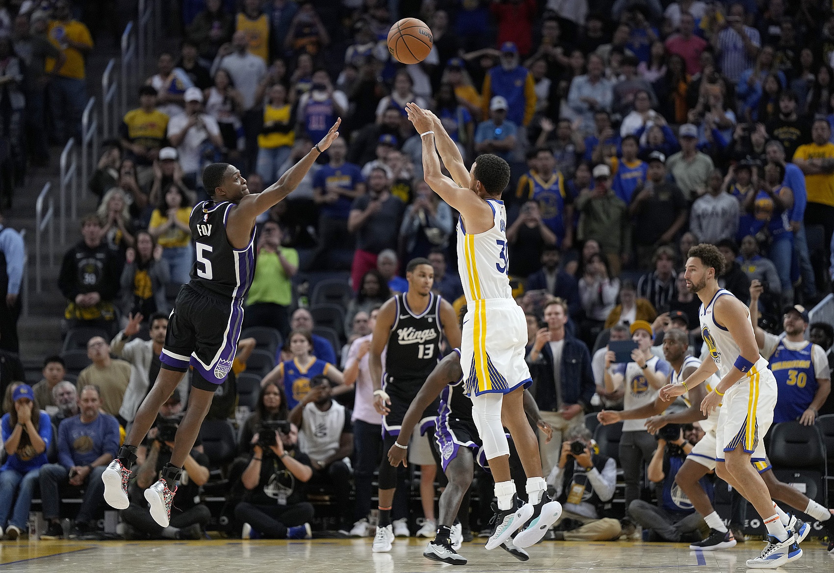 我們將受助攻的三分球統(tǒng)稱無球三分,可庫里與傳統(tǒng)定點射手還是不同,他的無球投籃以大量跑動、繞掩護(hù)為起手,令老詹都夸贊的耐力、接球出手時強大的平衡感意義不輸絲滑的手感。所以你會發(fā)現(xiàn),說要學(xué)習(xí)庫里打無球的球星很多,比如利拉德、特雷-楊、安東尼-愛德華茲,但繞掩護(hù)接球投三分從來不是他們的主要武器。