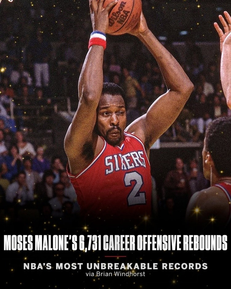 如果算上在ABA的數(shù)據(jù),摩西-馬龍的進攻籃板總數(shù)將達到7382個。僅計算NBA的數(shù)據(jù),他也比排名第二的阿蒂斯-吉爾摩多出2500個,比羅伯特-帕里什多出2100個。馬龍還保持著單場進攻籃板的最高紀錄(21個),第二名(19個)也是馬龍的。目前現(xiàn)役球員中生涯進攻籃板最多的是安德烈-德拉蒙德,但他仍比馬龍少3600個。