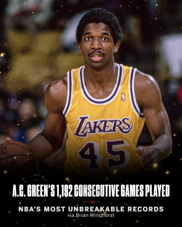 AC-格林從1986年到2001年連續(xù)16個賽季保持全勤,期間效力于四支不同的球隊。他打破了蘭迪-史密斯從1972年到1982年保持的906場連續(xù)出場紀錄。現(xiàn)年28歲的尼克斯球員米卡爾-布里奇斯職業(yè)生涯至今從未缺席過比賽,過去七年連續(xù)出場539場。如果他想追上AC-格林的紀錄,還需要在未來近八個完整賽季中保持全勤。