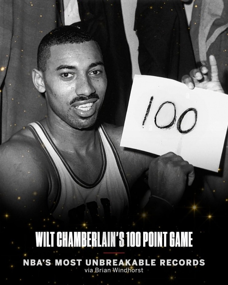 我們剛剛度過了這一壯舉的63周年紀念日(1962年3月2日),而這一紀錄極有可能在100周年時依然無人打破。張伯倫在那個賽季早些時候曾單場得到78分(那場比賽湖人的埃爾金-貝勒得到63分,最終張伯倫所在的球隊在加時賽中輸給了湖人),并在接下來的賽季中有兩場70+的表現(xiàn)。那場100分比賽的關(guān)鍵在于他的罰球表現(xiàn),張伯倫罰球線上32罰28中,命中率高達87.5%。而張伯倫職業(yè)生涯的罰球命中率僅為51%,那晚的罰球表現(xiàn)無疑是他在那個神奇賽季中最出色的一次。科比在2006年曾單場得到81分,是NBA歷史上第二高的單場得分,而且他比張伯倫少出手了17次(科比46次出手,張伯倫63次)。自科比以來,只有東契奇(73分)、米切爾(71分)、利拉德(71分)、布克(70分)和恩比德(70分)曾單場得分超過70分。