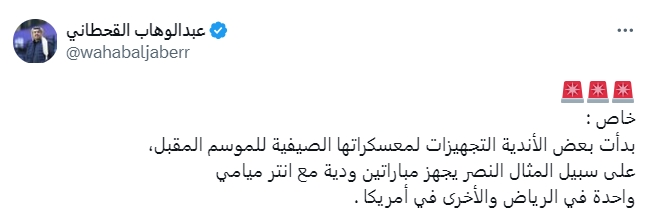 沙特媒體人wahabaljaberr消息,利雅得勝利計(jì)劃與邁阿密?chē)?guó)際進(jìn)行友誼賽。