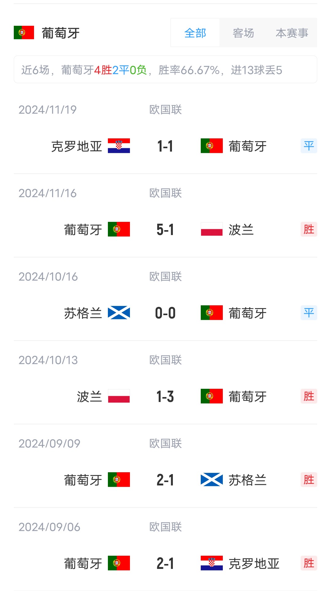 葡萄牙首發(fā):1-科斯塔、19-門德斯、3-迪亞斯、13-維加、5-達洛特、15-若奧-內(nèi)維斯、8-B費、23-維蒂尼亞、9-內(nèi)托、7-C羅、17-萊奧