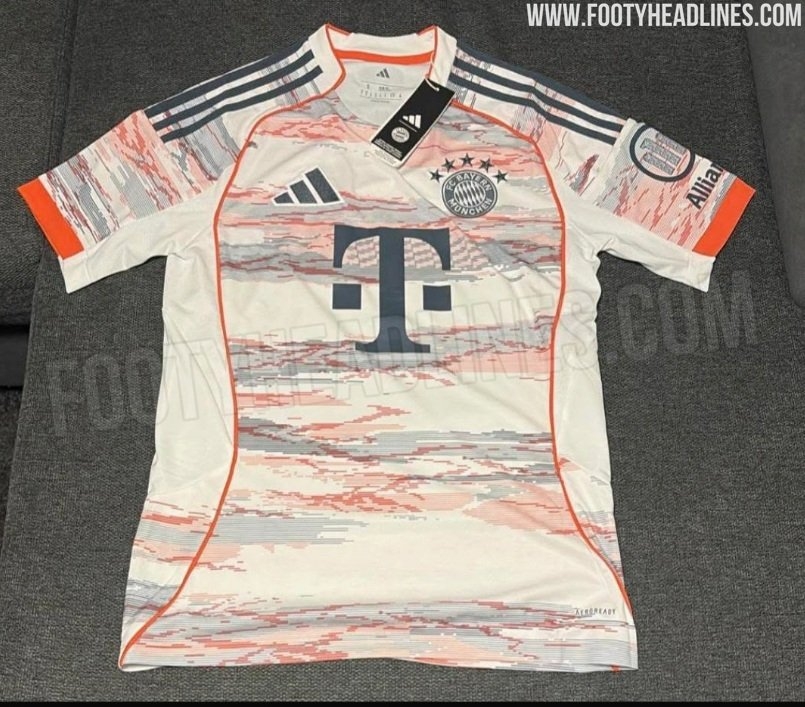 拜仁25-26賽季客場球衣曝光,白色搭配紅色灰色抽象圖案