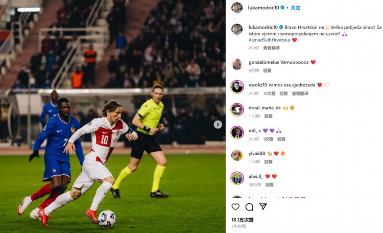 力克大熱門法國(guó)!莫德里奇社媒:次回合要保持同等信念和自信