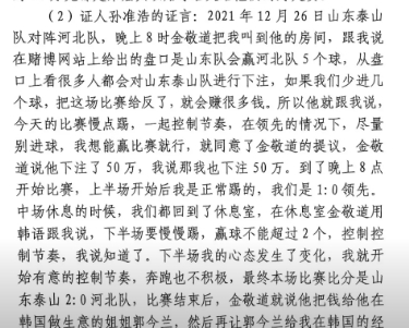 孫準浩證言:2-2海港后收金敬道20萬,2-0河北前下注50萬賽后收錢