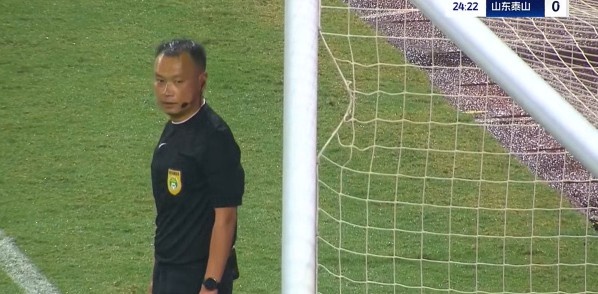第25分鐘,山東泰山的球網(wǎng)出現(xiàn)問題,比賽因此暫停一小會(huì)?!?/p>