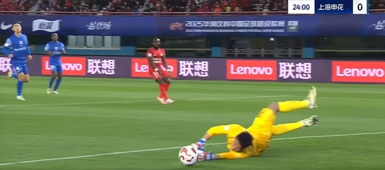 第8分鐘,申花前場右側(cè)定位球開到禁區(qū),路易斯頭球攻門角度太正被門將沒收,同時(shí)也是越位在先了↓