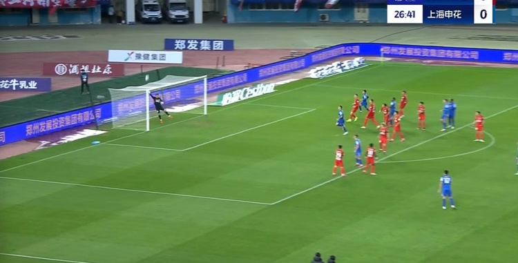 半場-河南1-0申花 邁達(dá)納頭球破門吳曦門線解圍高天意定位球中框
