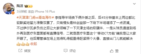 03月29日訊 中超第三輪,天津津門(mén)虎1-0青島海牛。媒體人陸洋在微博發(fā)文,稱(chēng)贊天津主場(chǎng)的軟硬件設(shè)施。