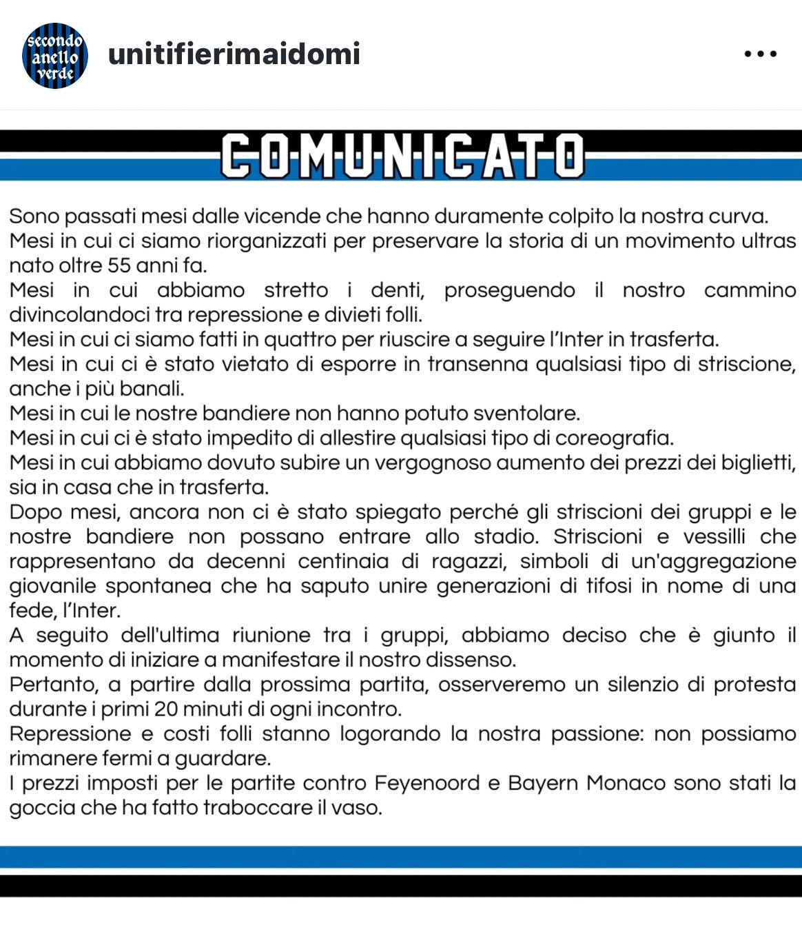 3月30日訊 國(guó)米北看臺(tái)球迷組織發(fā)布公告,宣布在之后每場(chǎng)比賽的前20分鐘保持沉默,抗議票價(jià)過(guò)高、主場(chǎng)禁止攜帶標(biāo)語(yǔ)等情況。