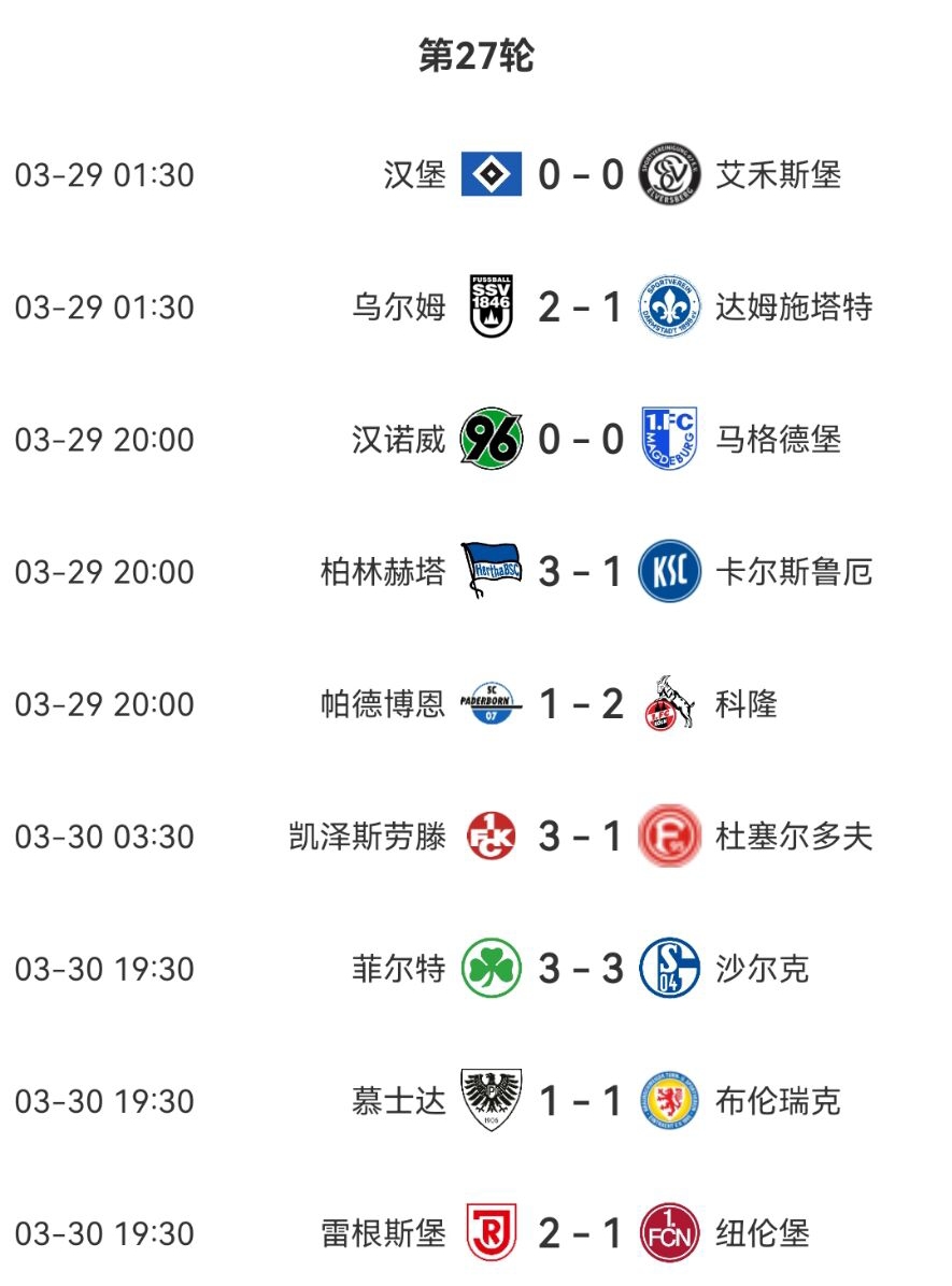 激烈!德乙積分:漢堡第2落后第1科隆1分,3-9名差5分&k神帶隊(duì)第8