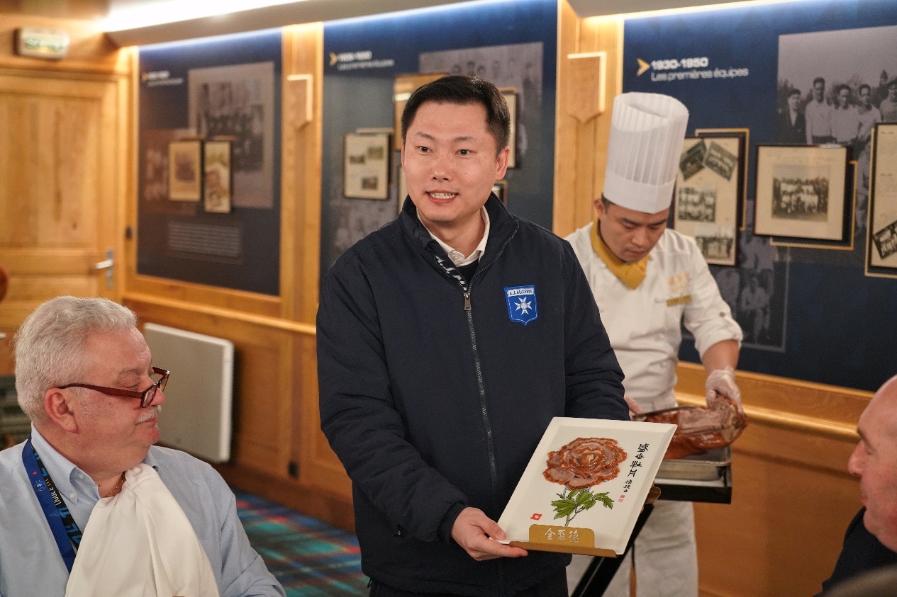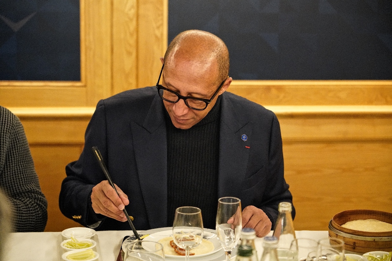 會面結(jié)束后,周云杰先生邀請迪亞洛主席一同共進(jìn)午餐。一同出席午宴的重要成員還有歐塞爾市長馬勞、斯特拉斯堡主席馬克-凱勒和足協(xié)領(lǐng)導(dǎo)小組成員帕朗。本次午宴特別邀請了波爾多全聚德的主廚操刀制作烤鴨,希望各位客人可以在法國品嘗到地道的中國美食和文化。