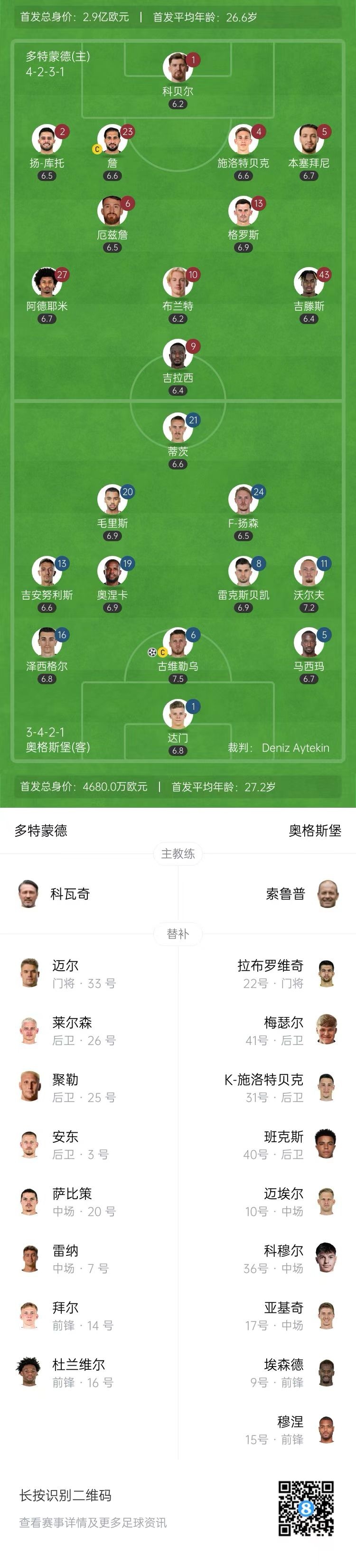 半場-多特暫0-1奧格斯堡 多特半場0射正古維勒烏頭球吊射破門