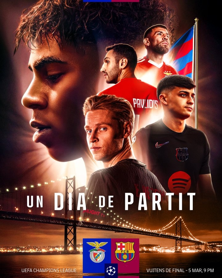 巴薩曬海報(bào)預(yù)熱與本菲卡比賽,亞馬爾、德容、佩德里出鏡