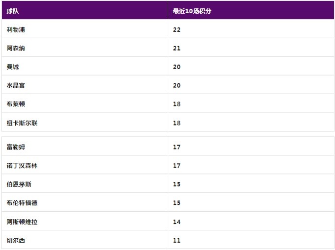 前12名球隊最近10場聯(lián)賽戰(zhàn)績