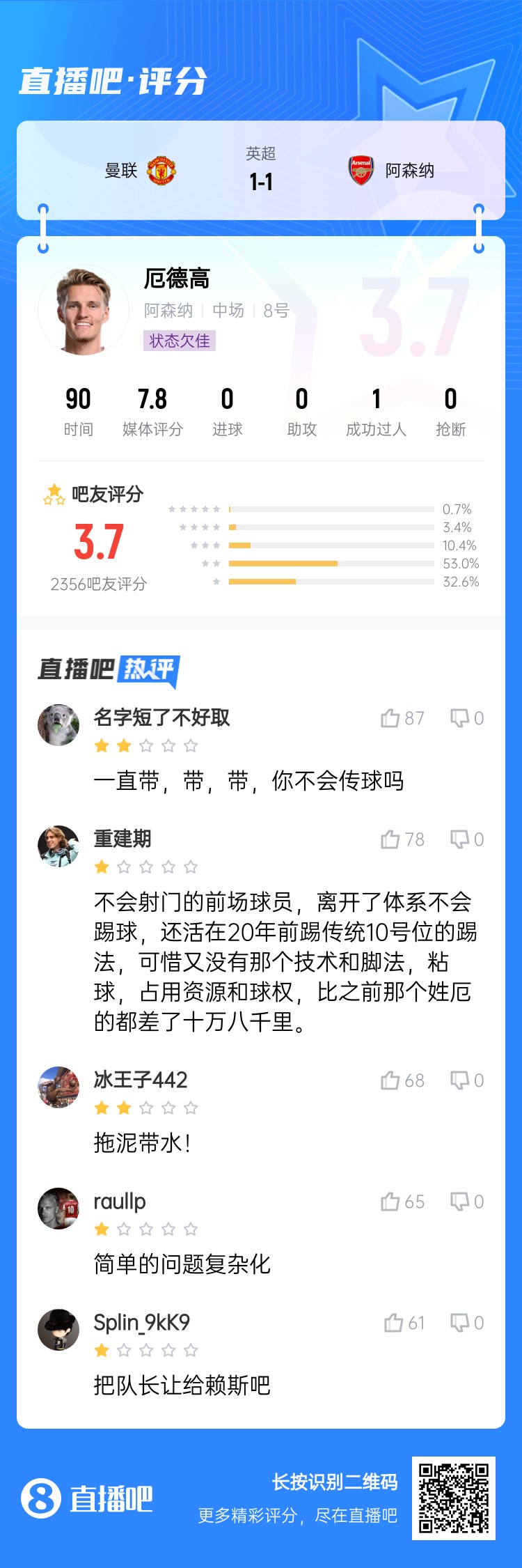 惹眾怒?厄德高被集火:看著很忙啥也沒(méi)干 拿他比B費(fèi)是對(duì)B費(fèi)不敬