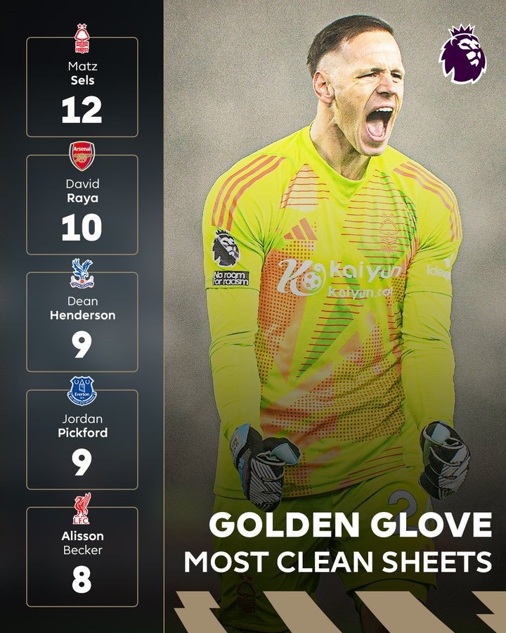 英超官推寫道:“森林對陣曼城,塞爾斯又一次零封對手,現(xiàn)在他12次零封,多2次領(lǐng)跑零封榜。”