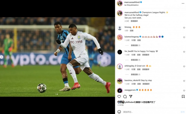 拉什福德社媒曬照:歐冠之夜,我們距離晉級(jí)還有一半路程!