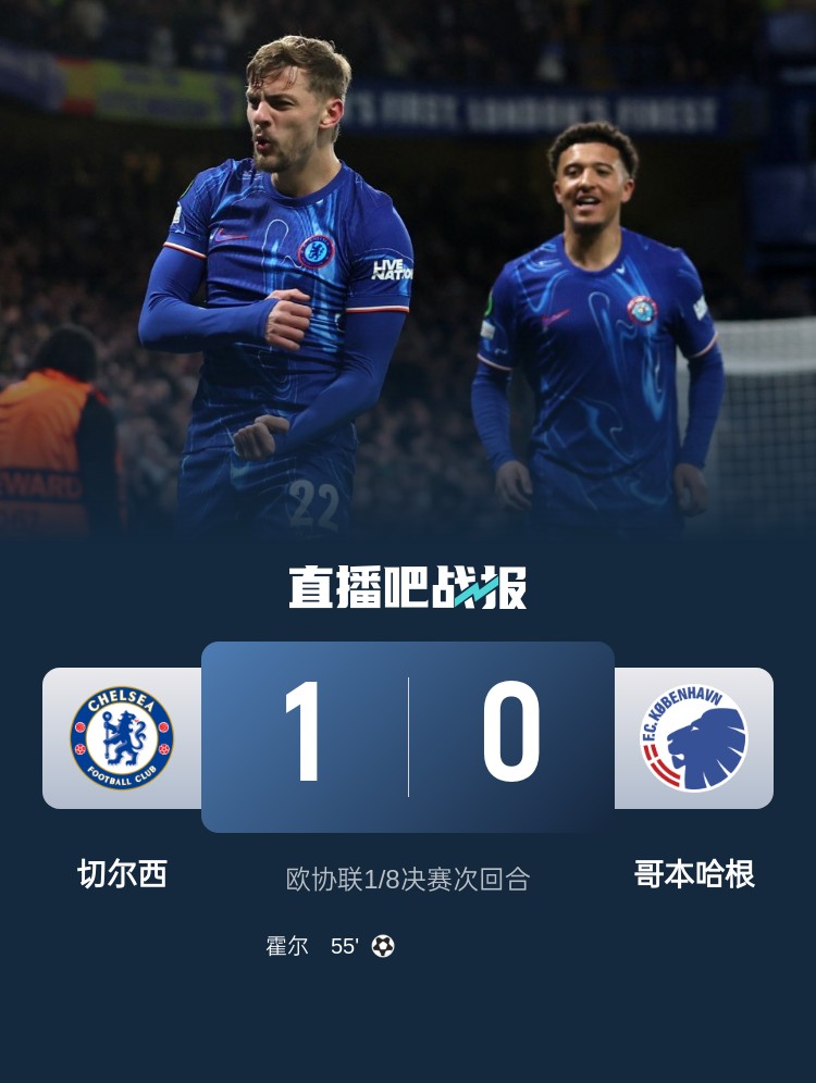 切爾西1-0總比分3-1哥本哈根,晉級(jí)歐協(xié)聯(lián)8強(qiáng)階段。