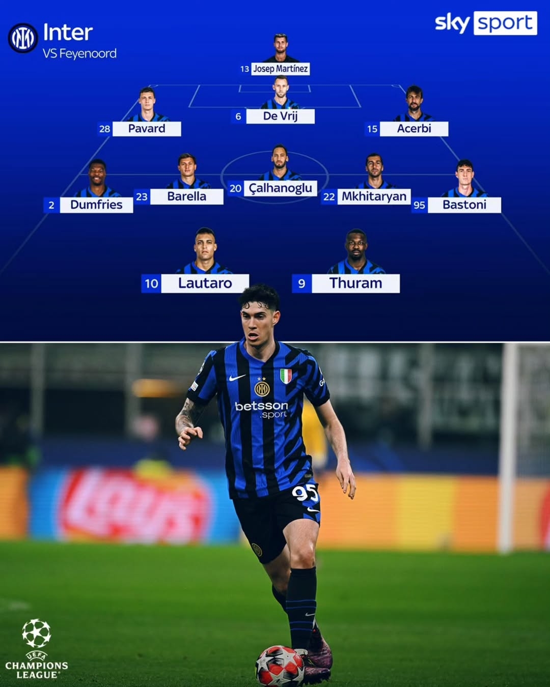 3月5日訊 本周四凌晨1:45,歐冠1/8決賽首回合,國米將在客場對陣費(fèi)耶諾德。賽前,意大利天空體育預(yù)測了國米的首發(fā)陣容。