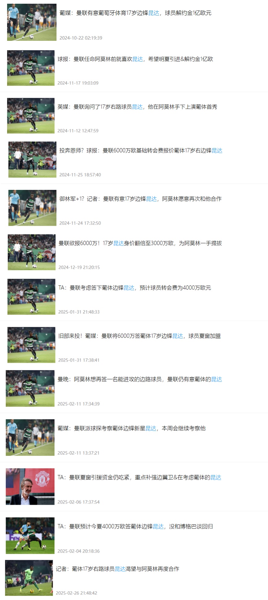 昆達(dá)2019年加盟葡萄牙體育青訓(xùn),去年夏天被阿莫林提拔至葡體一線隊(duì)。從去年10月開(kāi)始,就持續(xù)有曼聯(lián)打算簽下昆達(dá)的傳聞。
